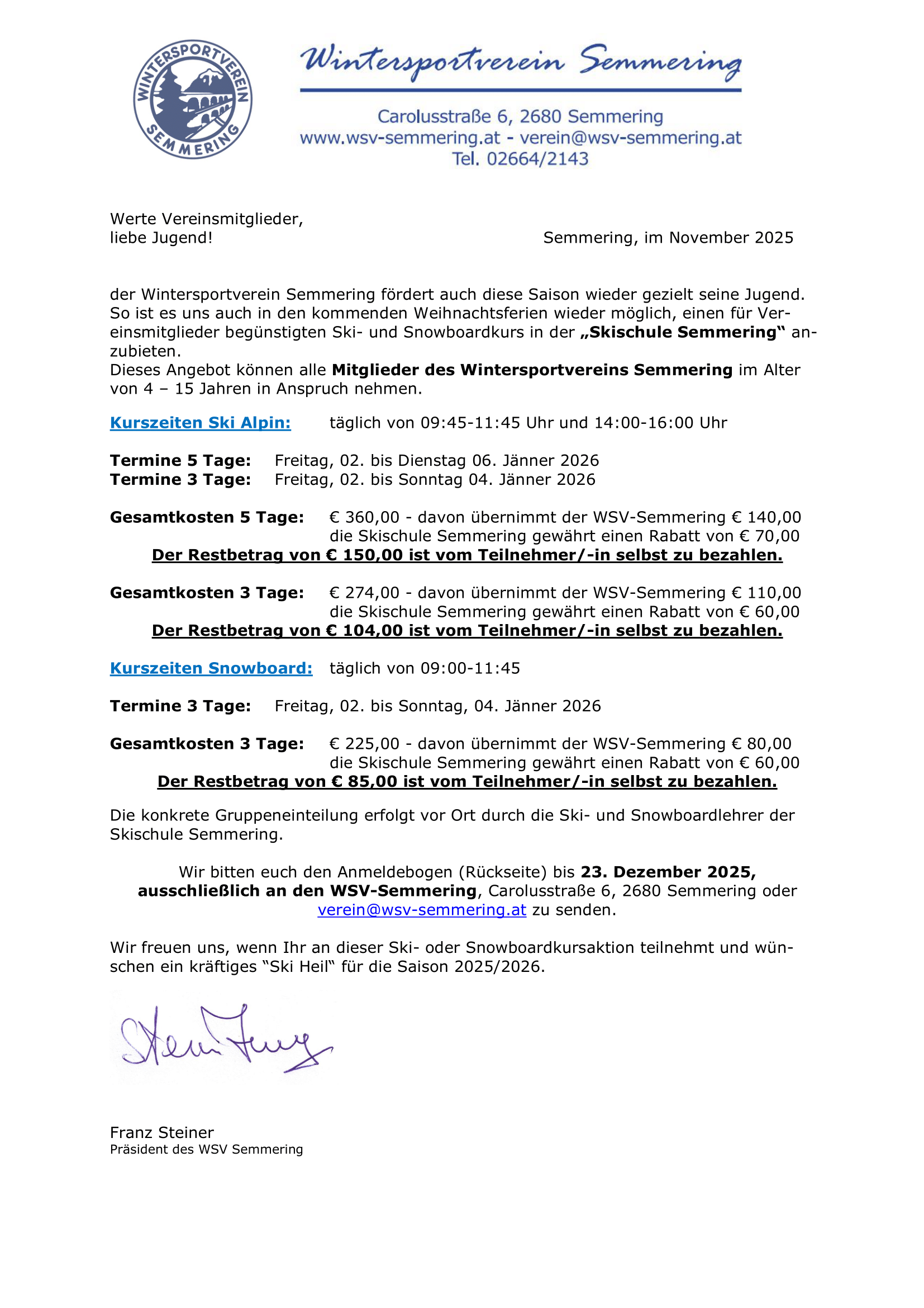 Dieses Angebot können alle Mitglieder des WSV Semmering im Alter von 4 bis 15 Jahren in Anspruch nehmen.